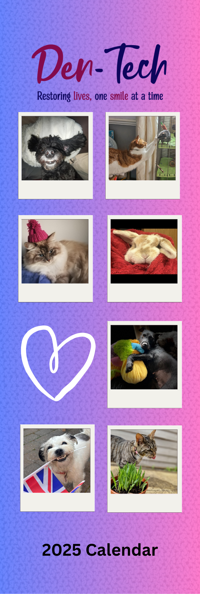 Den-Tech's 2025 limited edition charity calendar is now available. Featuring pictures of the beloved pets of our supporters. Get yours before they sell out!